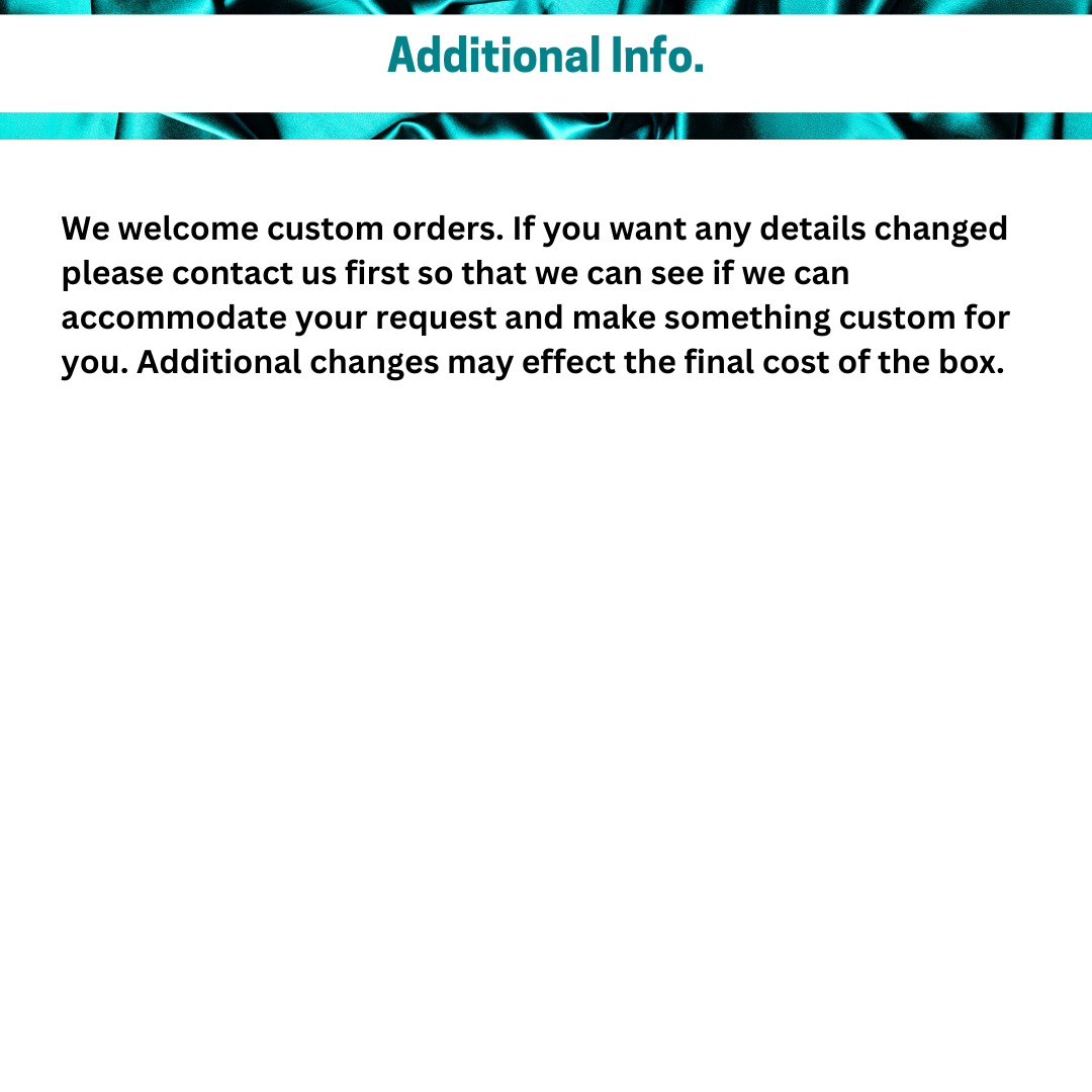 If you would like something custom please reach out so we can create something to meet your needs. Prices will vary based on modifications.